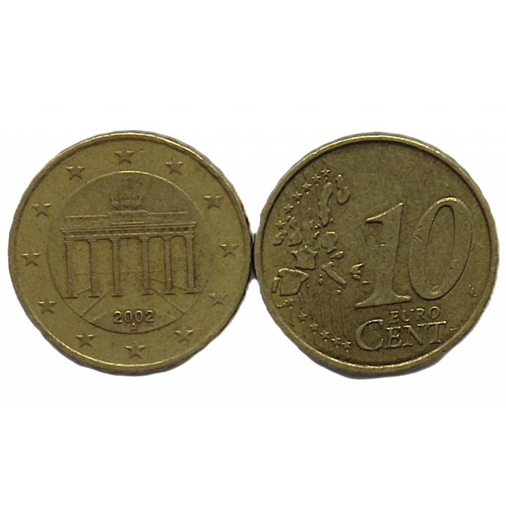 ГЕРМАНИЯ 10 евроцентов 2002 (A) Бранденбургские ворота в Берлине