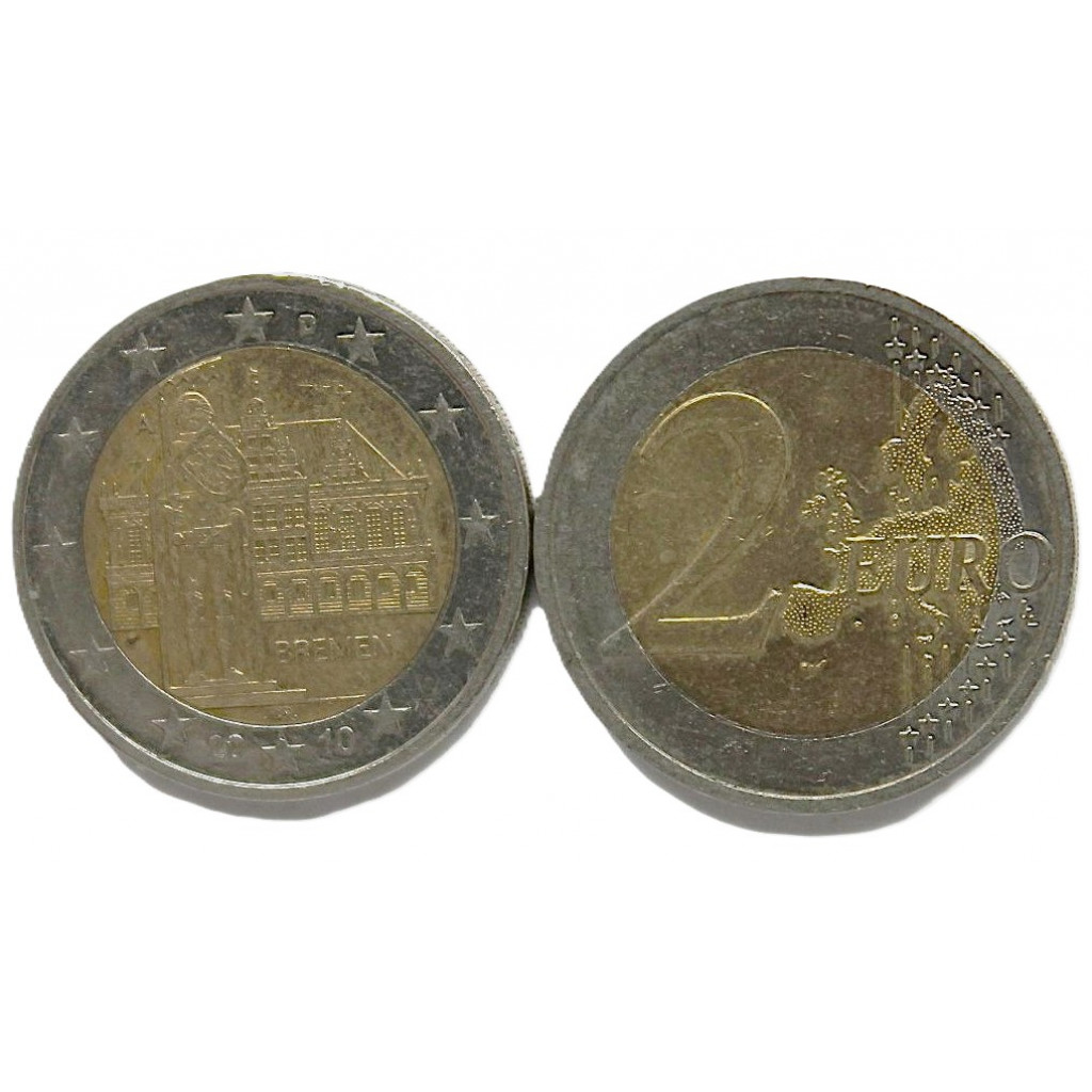 ГЕРМАНИЯ 2 евро 2010 (A) «Бремен». Городская ратуша и Роланд