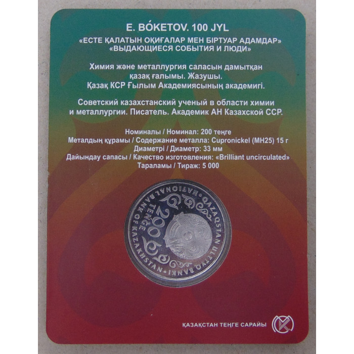 Казахстан 200 тенге 2025 Академик Евней Бокетов. Блистер.