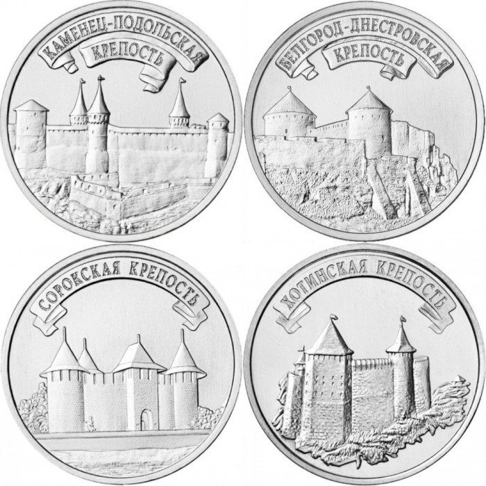 Приднестровье 3 рубля 2025 год UNC Древние крепости на Днестре Набор 4 монеты