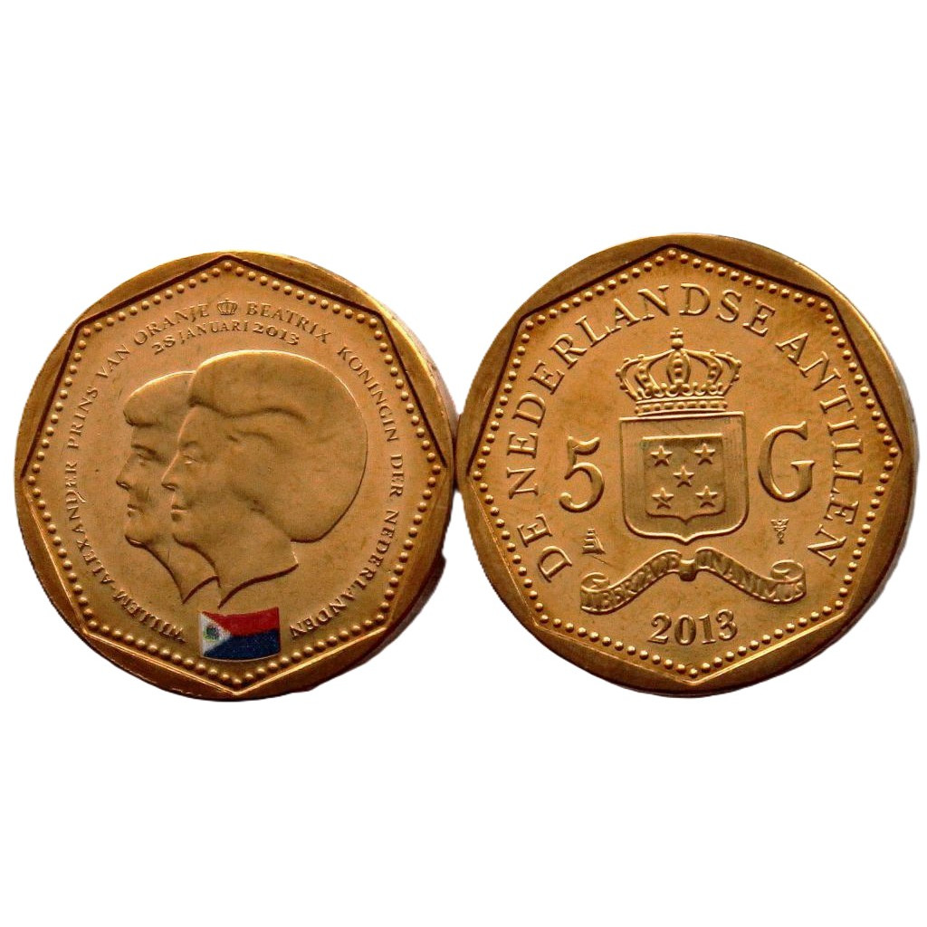 Нидерландские Антильские острова (Синт-Мартен) 5 гульденов 2013 UNC. «Отречение королевы Биатрикс»
