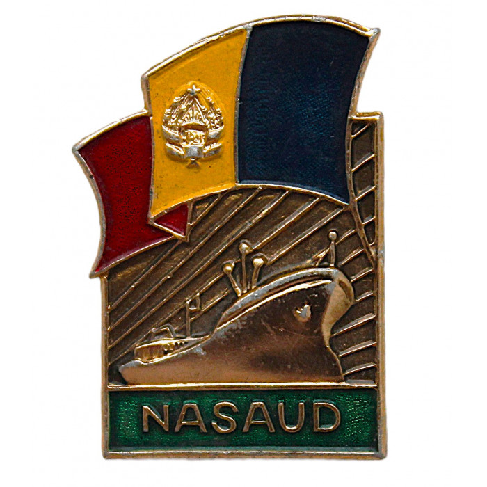 СССР нагрудный знак «NASAUD». Спуск на воду сухогруза для Румынии. Адмиралтейский завод. Ленинград
