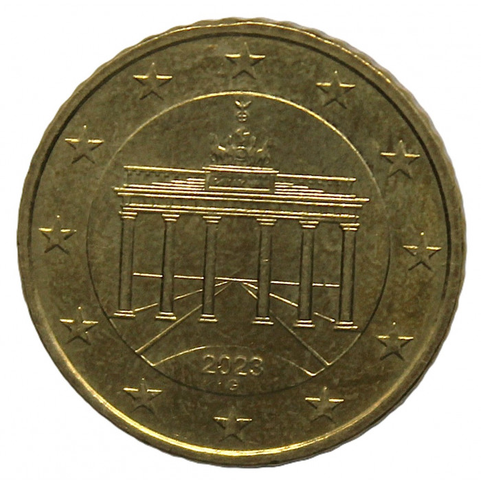 ГЕРМАНИЯ 50 евроцентов 2023 (G) UNC. Бранденбургские ворота в Берлине