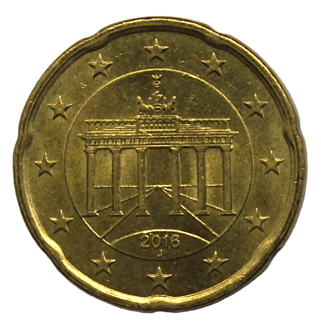 ГЕРМАНИЯ 20 евроцентов 2016 (J) aUNC. Бранденбургские ворота в Берлине