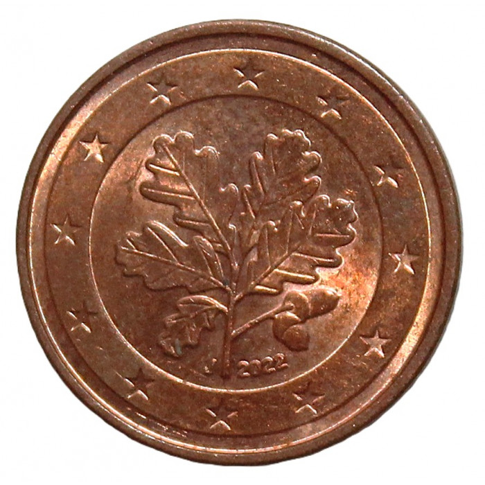 ГЕРМАНИЯ 2 евроцента 2022 (J) Ветвь дуба