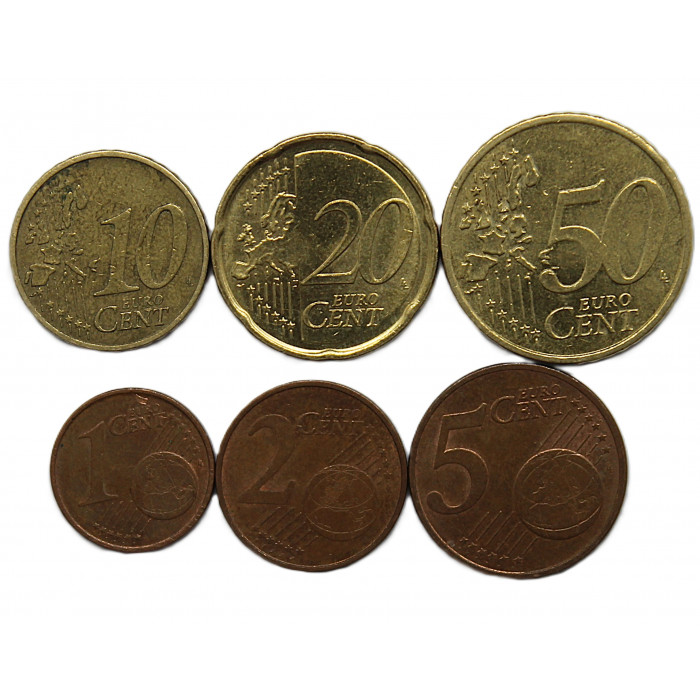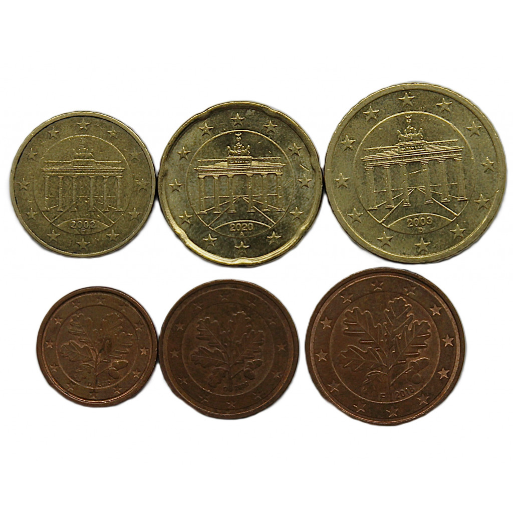 ГЕРМАНИЯ набор из 6 монет 2002-2020 (1, 2, 5, 10, 20, 50 евроцент)