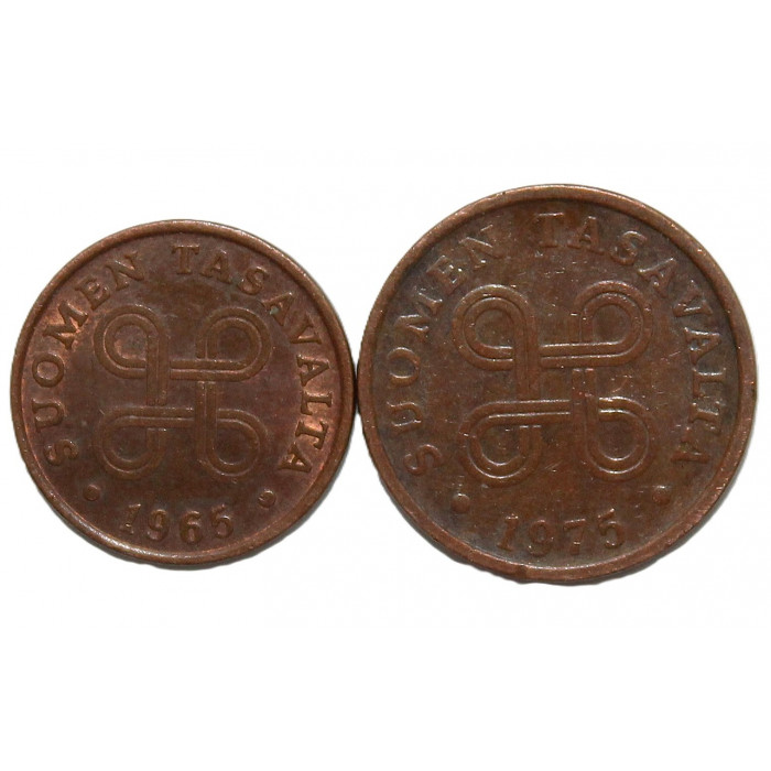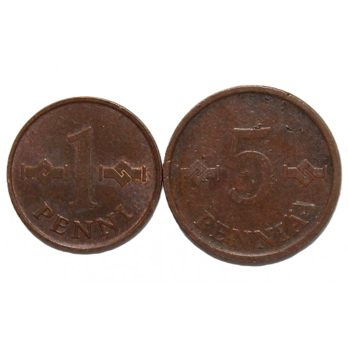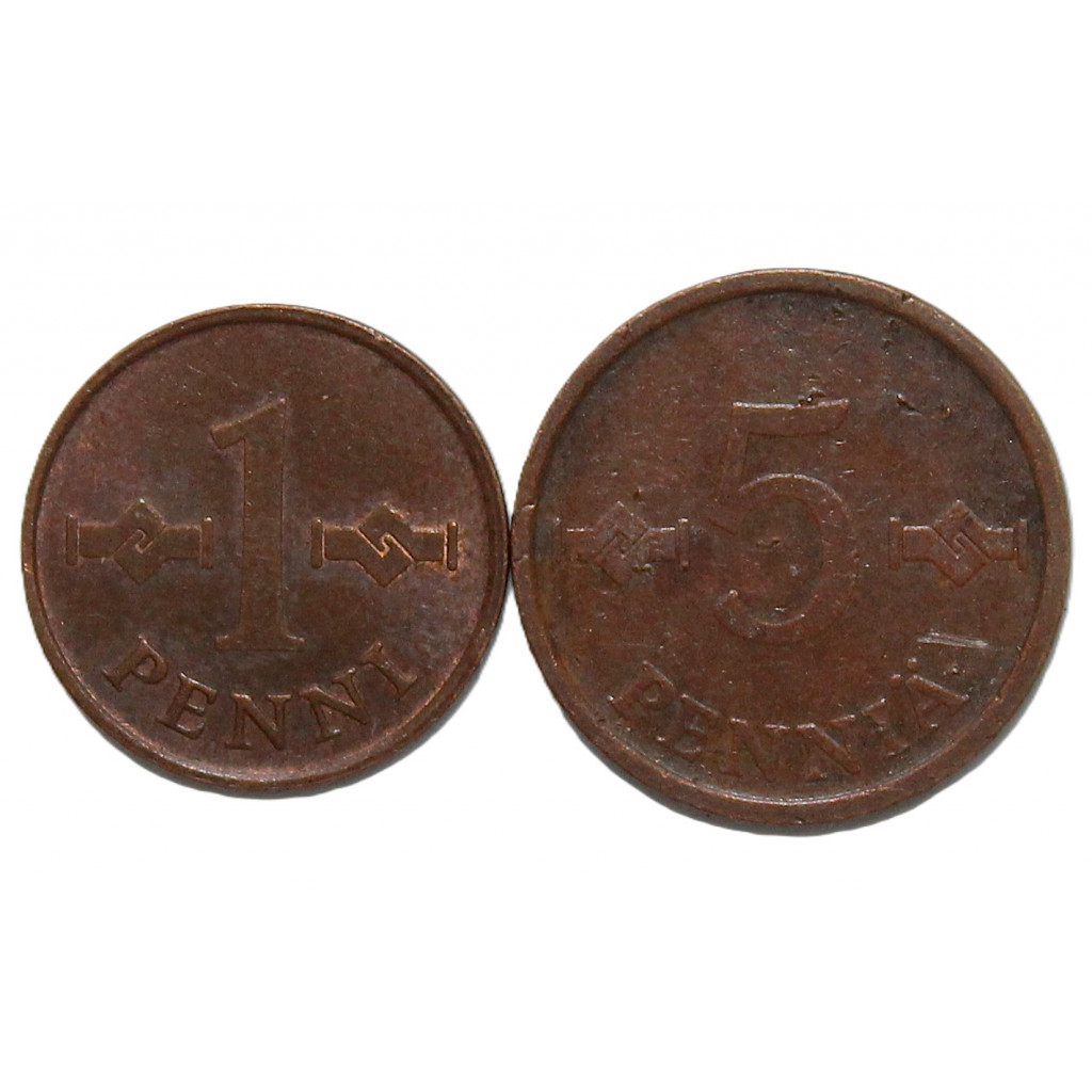ФИНЛЯНДИЯ 1 пенни 1965 и 5 пенни 1975 (комплект из 2 монет)