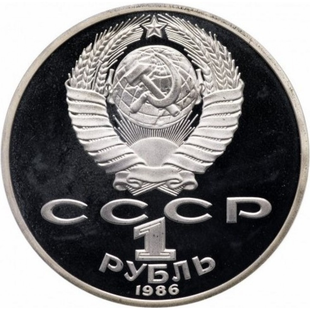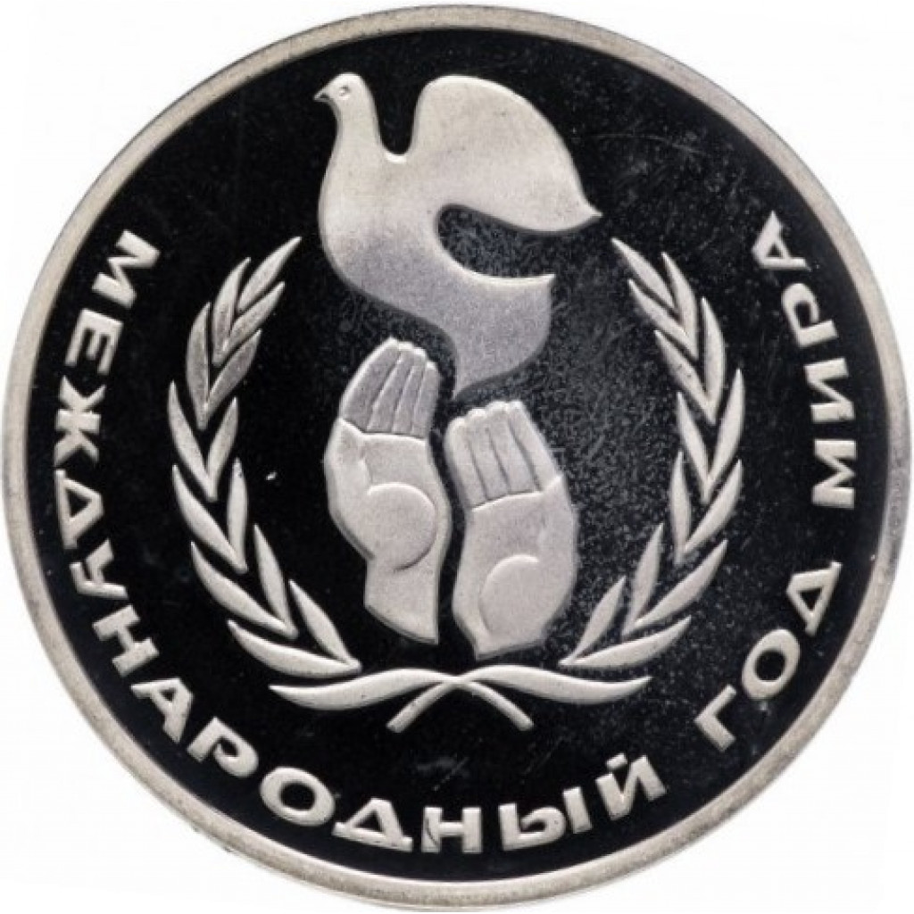 СССР 1 рубль 1986 Н год PROOF Y# 201 Международный год мира в запайке