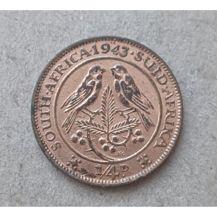 ЮАР 1/4 Пенни 1943 год , Воробей , Георг 6