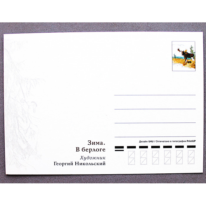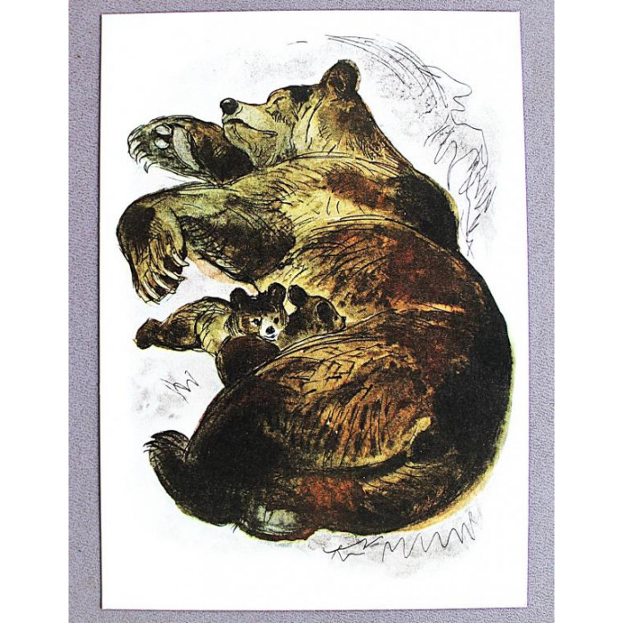 Почтовая открытка «ЗИМА. В БЕРЛОГЕ». Георгий Никольский. Чистая. Посткроссинг