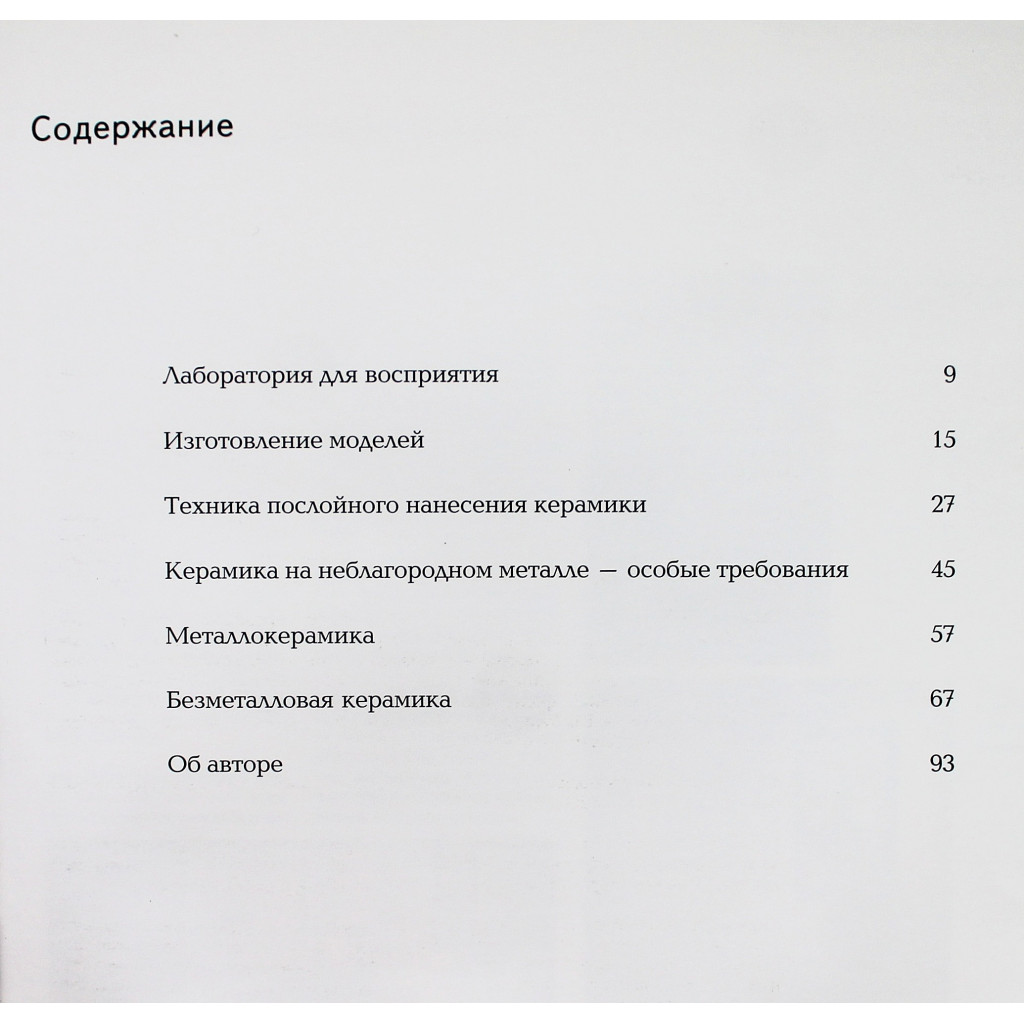 Специфичная, авторская технология работы с керамикой и керамическими системами чрезвычайно облегчает ежедневную работу и приносит конкретную пользу. Особое внимание автор обращает на такие понятия, как анатомическая форма, цвет и качество поверхности. Подробно продемонстрированные в книге технические этапы легко воспроизводимы и сопровождаются качественными иллюстрациями. Книга интересна, как опытному, так и начинающему зубному технику. Она прекрасно пополнит библиотеку любой зуботехнической лаборатории.