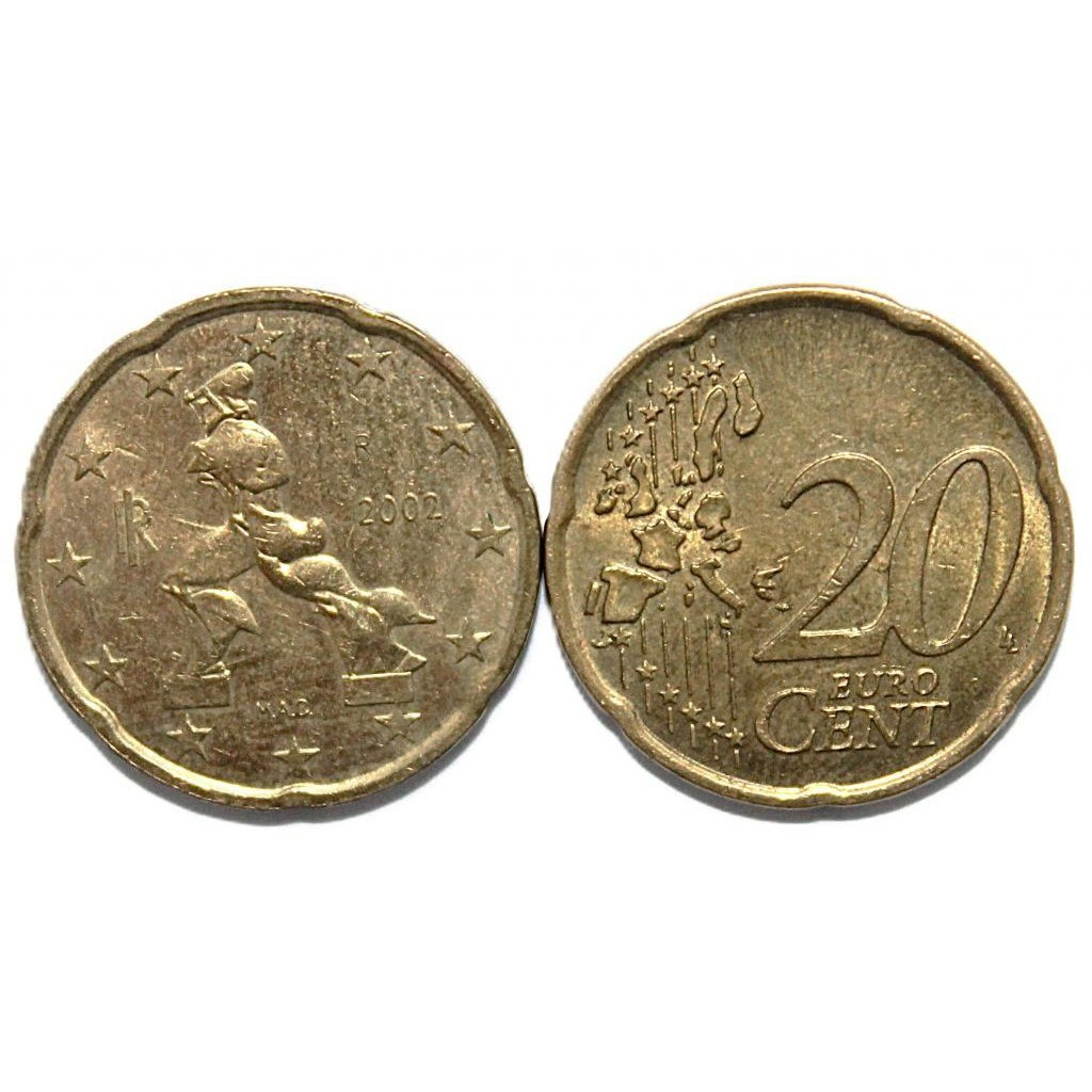 ИТАЛИЯ 20 евроцентов 2002. Скульптура «Уникальные формы непрерывности в пространстве»