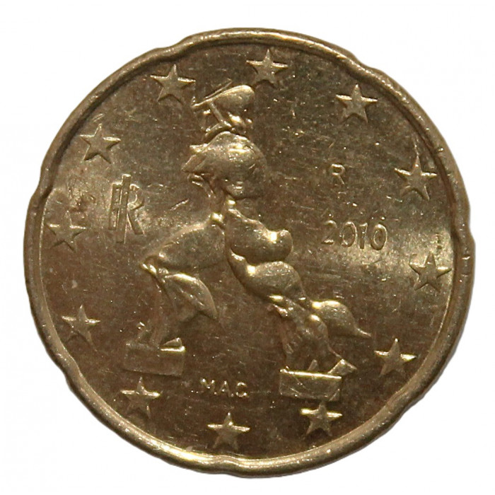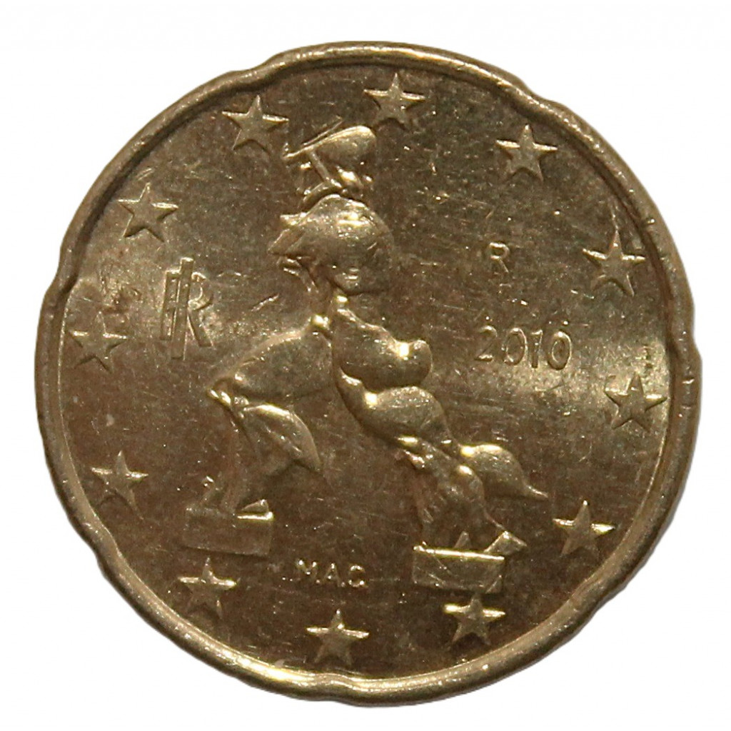 ИТАЛИЯ 20 евроцентов 2010. Скульптура «Уникальные формы непрерывности в пространстве»