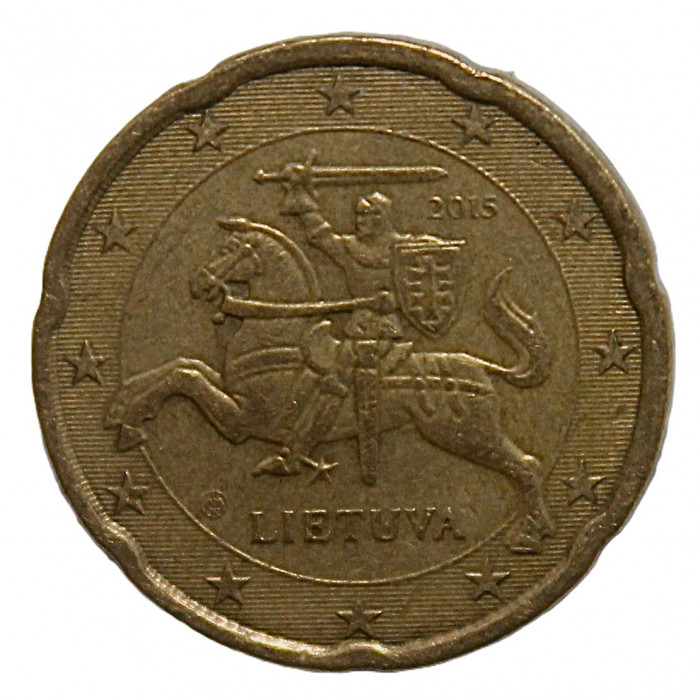 ЛИТВА 20 евроцентов 2015. Геральдический всадник «Витис»