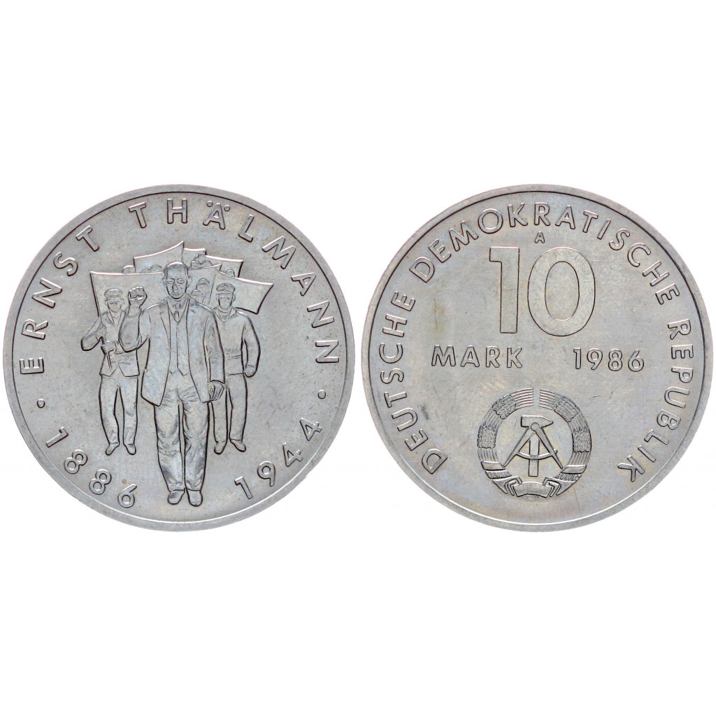 ГДР 10 марок 1986 100 лет со Дня Рождения Эрнста Тельмана KM# 109. UNC