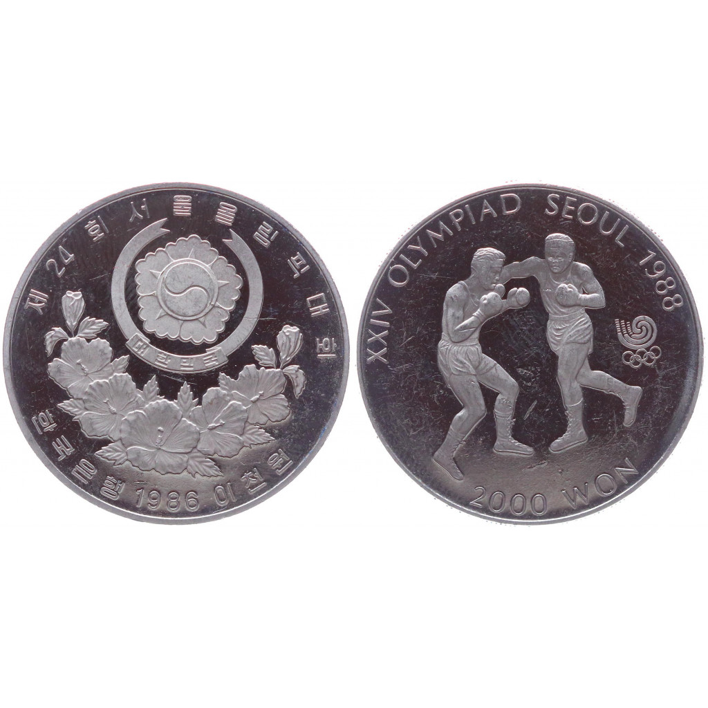 Южная Корея 2000 вон 1988 14-я Олимпиада в Сеуле. Бокс KM# 50. PROOF