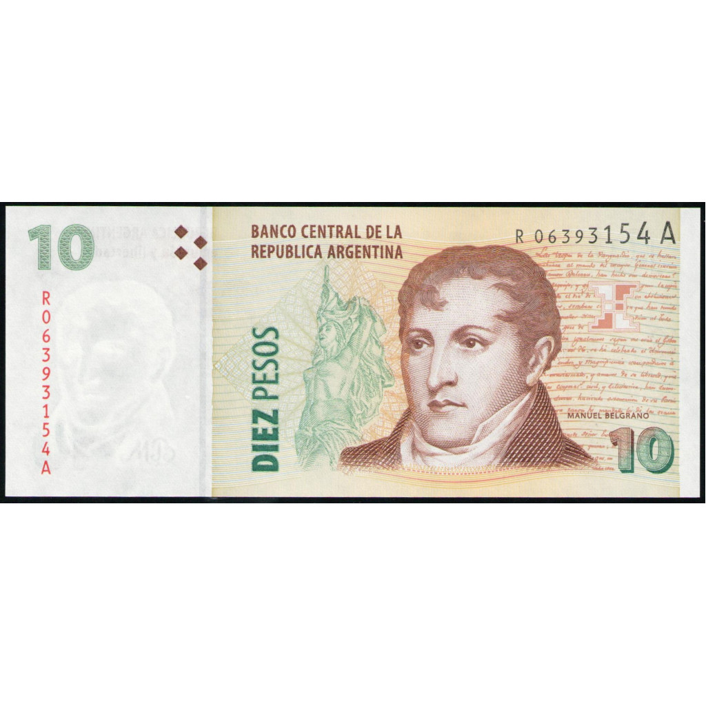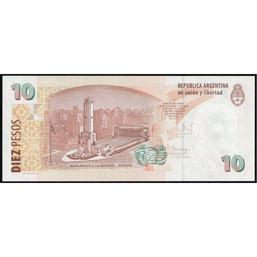 Аргентина 10 Песо 2003 год , UNC , Генерал Мануэль Бельграно