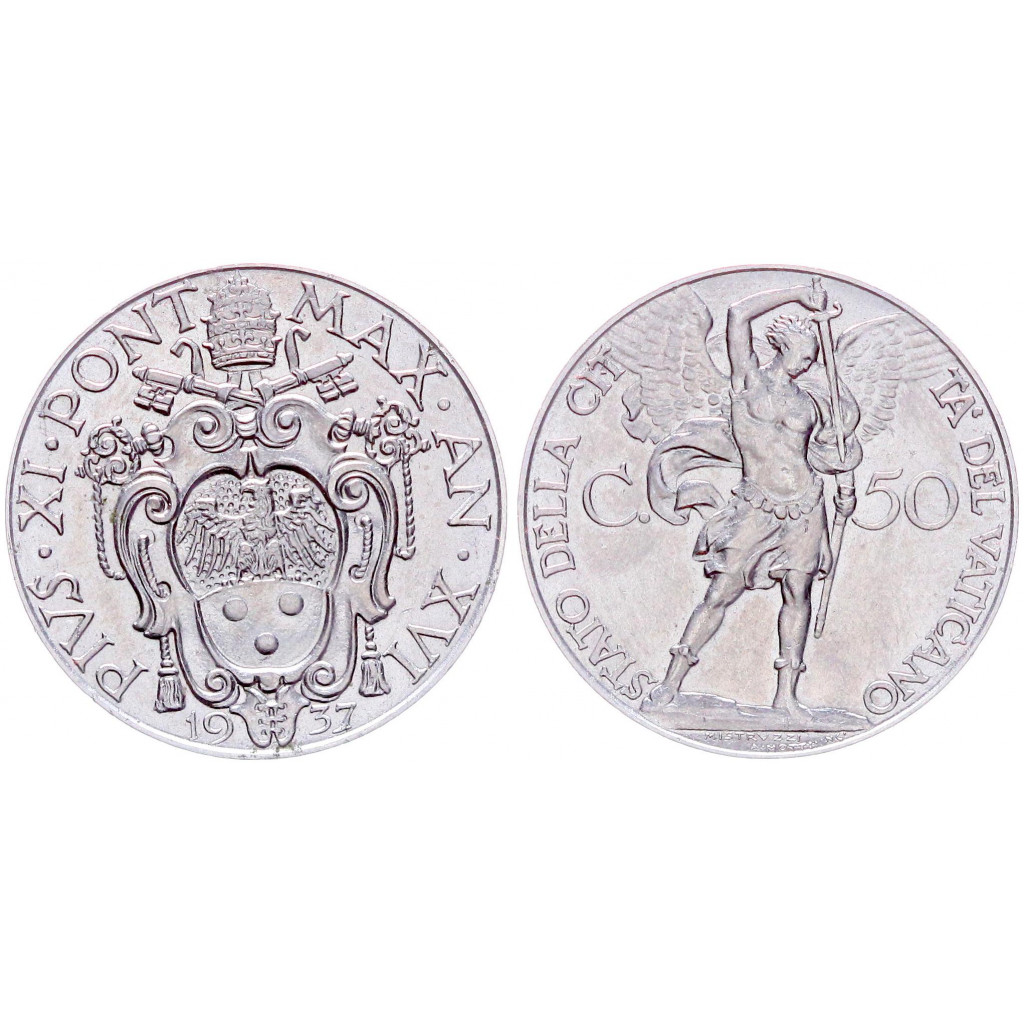 Ватикан 50 чентезимо 1937 Папа Пий 12 KM# 34, UNC