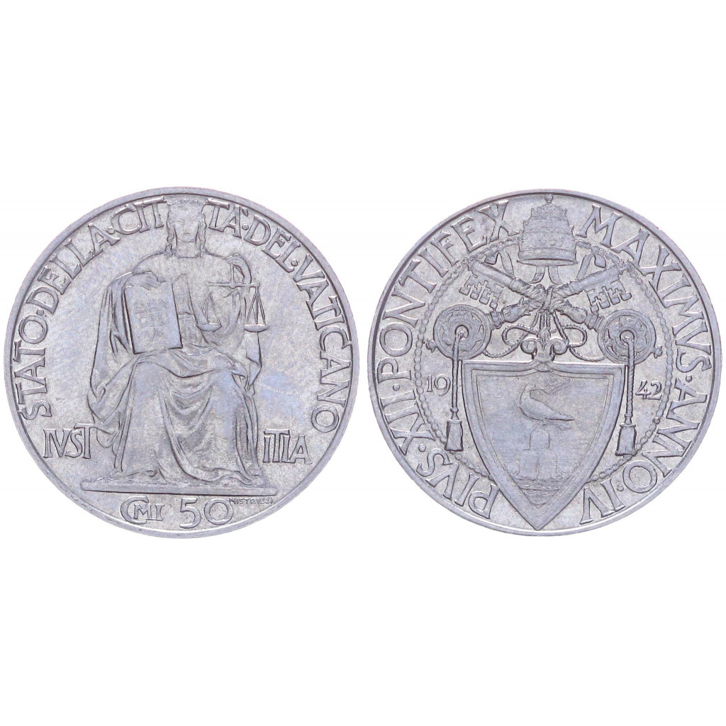 Ватикан 50 чентезимо 1942 Папа Пий 12 KM# 34, UNC