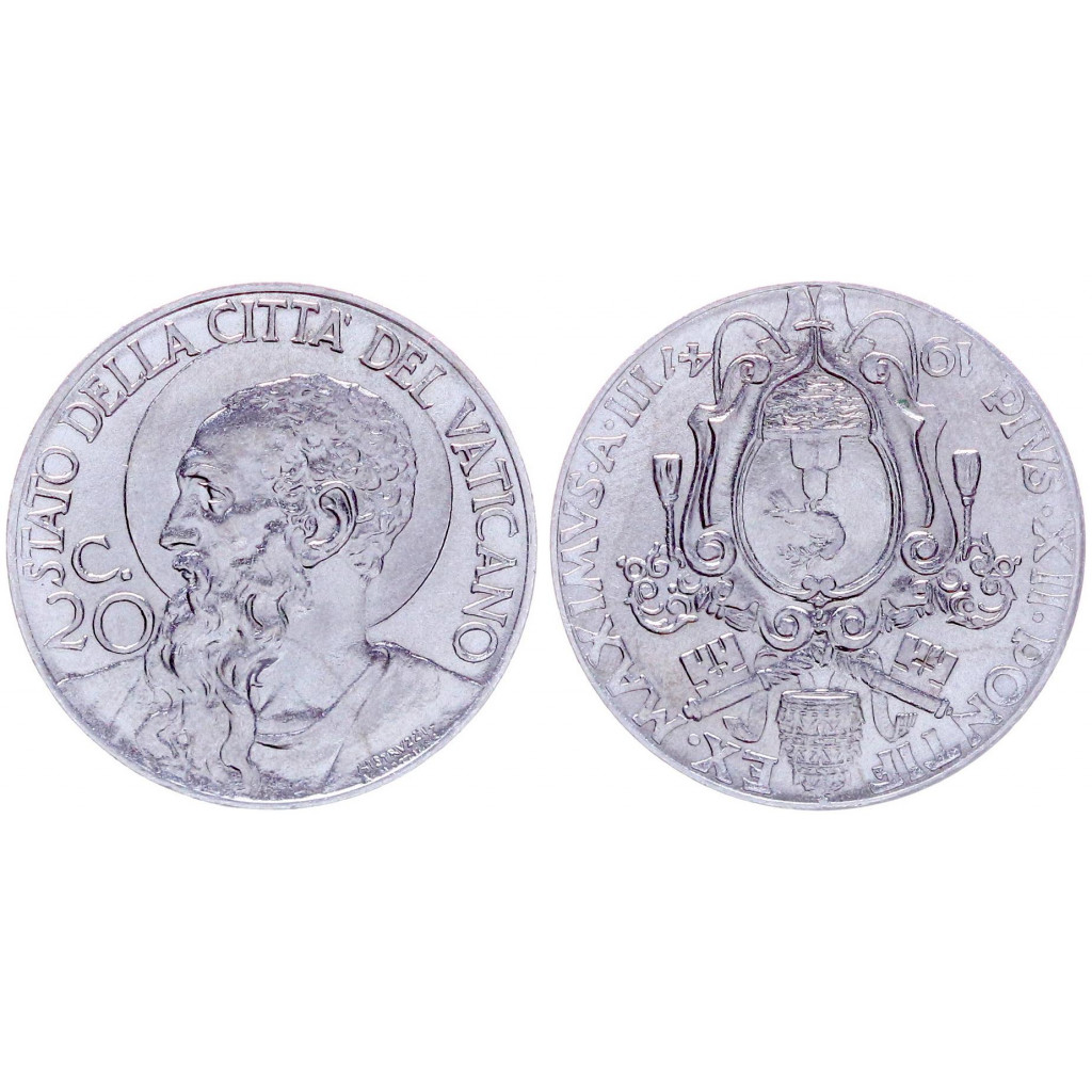 Ватикан 20 чентезимо 1941 папа Пий 12 KM# 24a, UNC