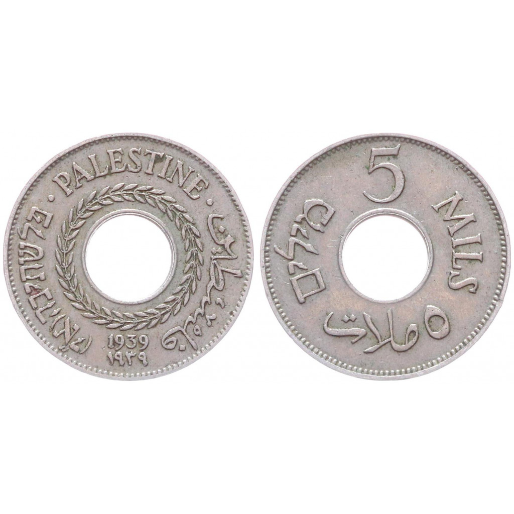 Британская Палестина 5 милей 1939 KM# 3, XF