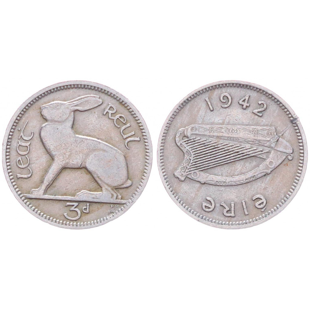 Ирландия 3 пенса 1942 KM# 12a, XF
