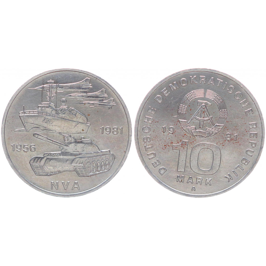 ГДР 10 марок 1981 25 лет Национальной Народной Армии ГДР KM# 80 UNC