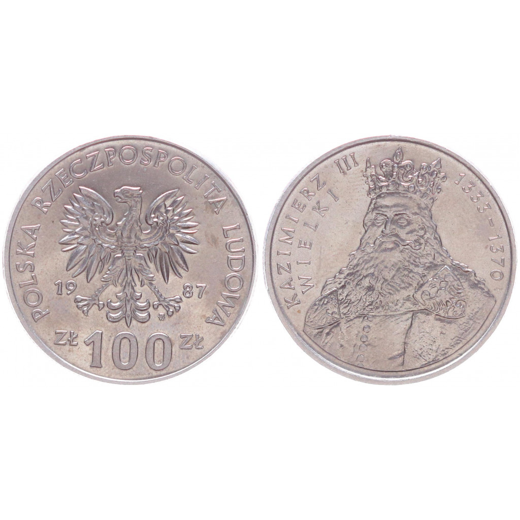 Польша 100 злотых 1987 Король Казимир 3 Великий Y# 167 UNC