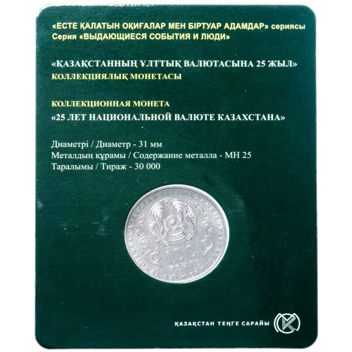 Казахстан 100 Тенге 2018 год UC# 147 25 лет тенге В блистере