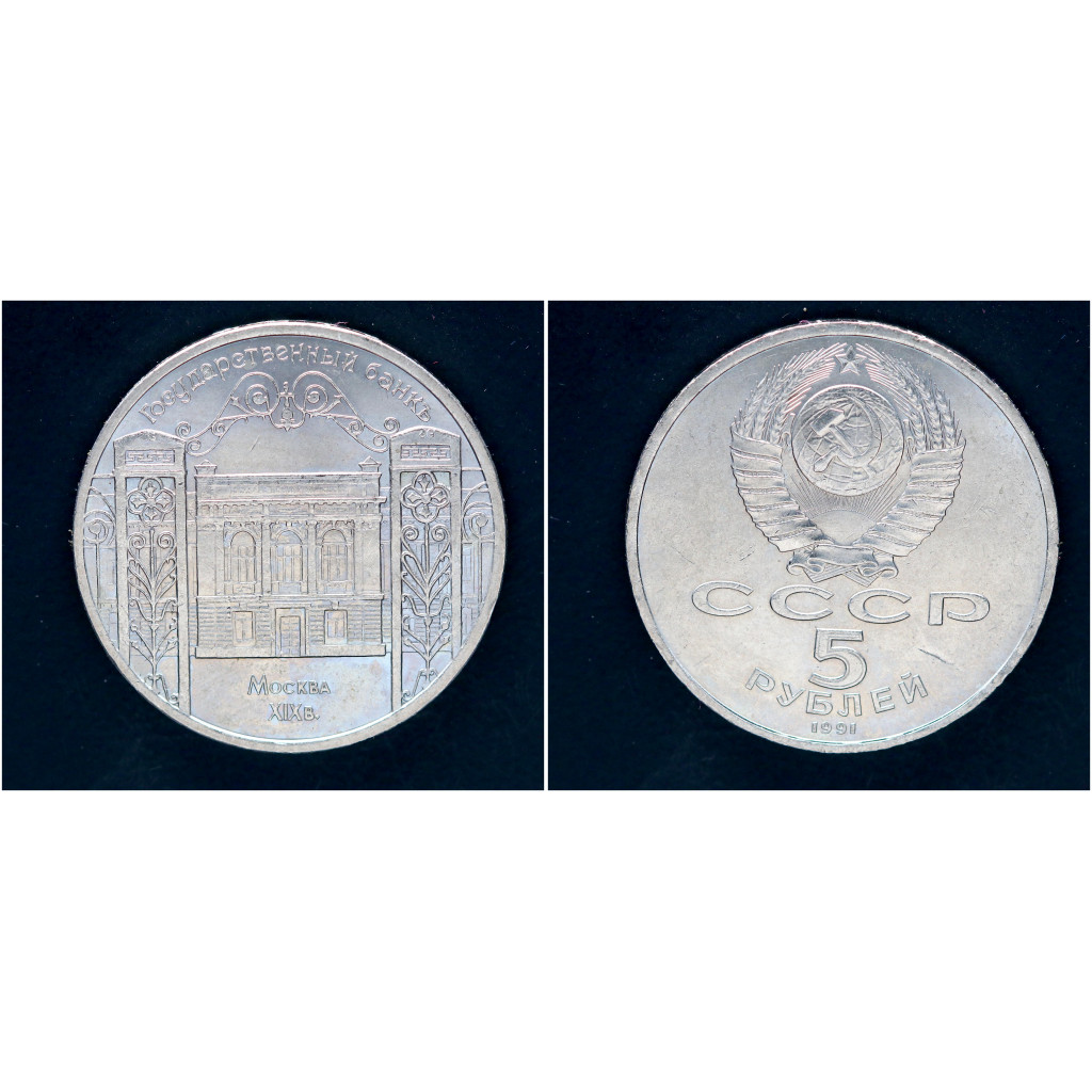 СССР 5 рублей 1991 г. Здание Госбанка СССР в Москве
