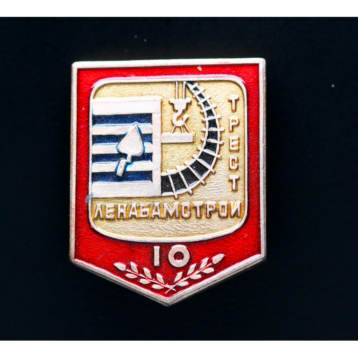 СССР Знак 10 лет Трест ЛенаБамСтрой Al заколка (BOX)