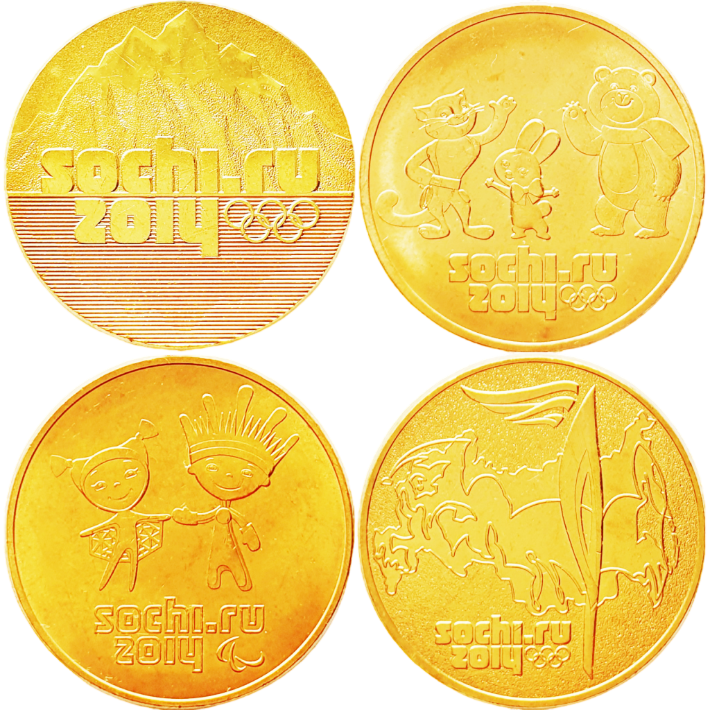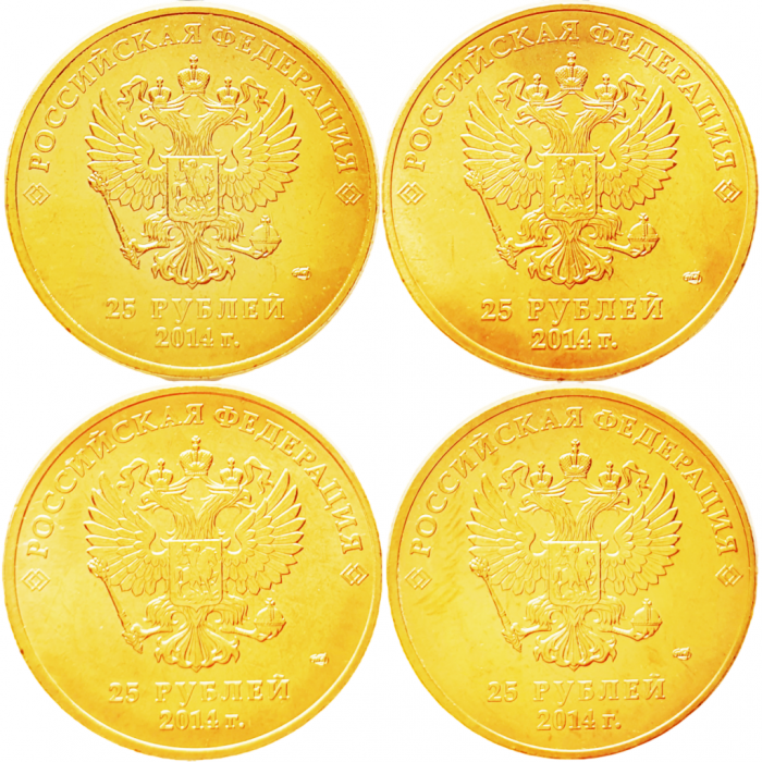Россия 25 рублей 2014 год Сочи 2014 Набор 4 монеты Цвет золото