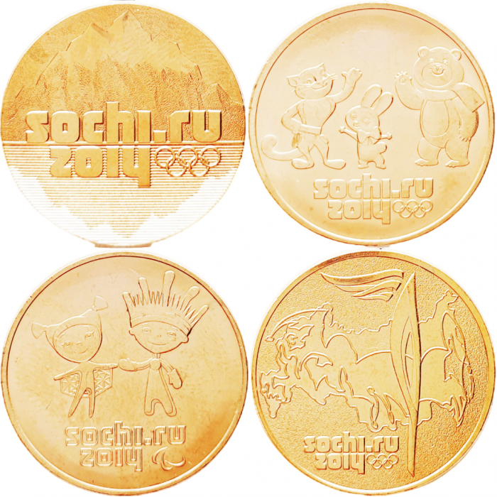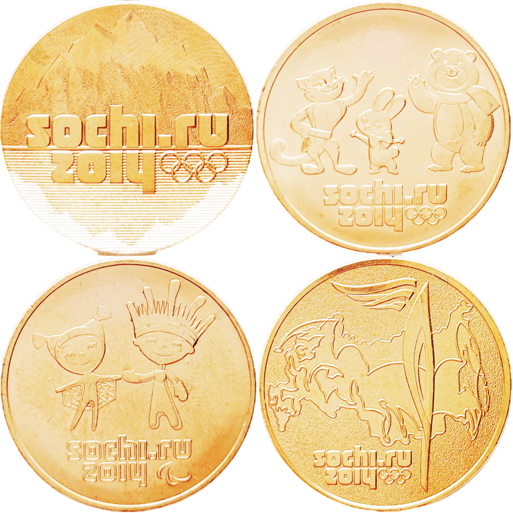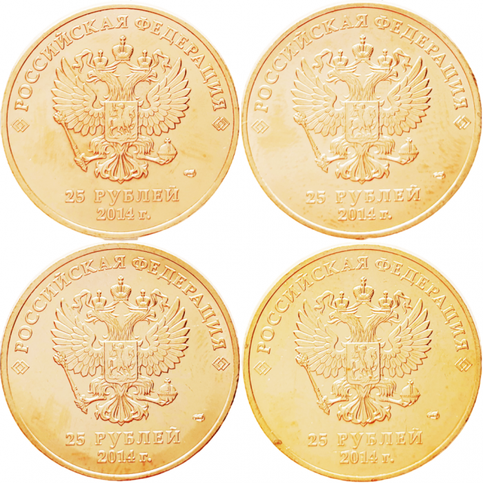 Россия 25 рублей 2014 год Сочи 2014 Набор 4 монеты Цвет бронза