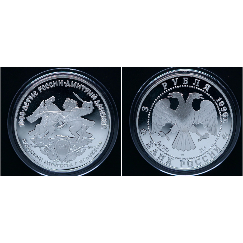 Россия 3 Рубля 1996 ЛМД год Пруф / Proof. Дмитрий Донской. Поединок Пересвета с Челубеем