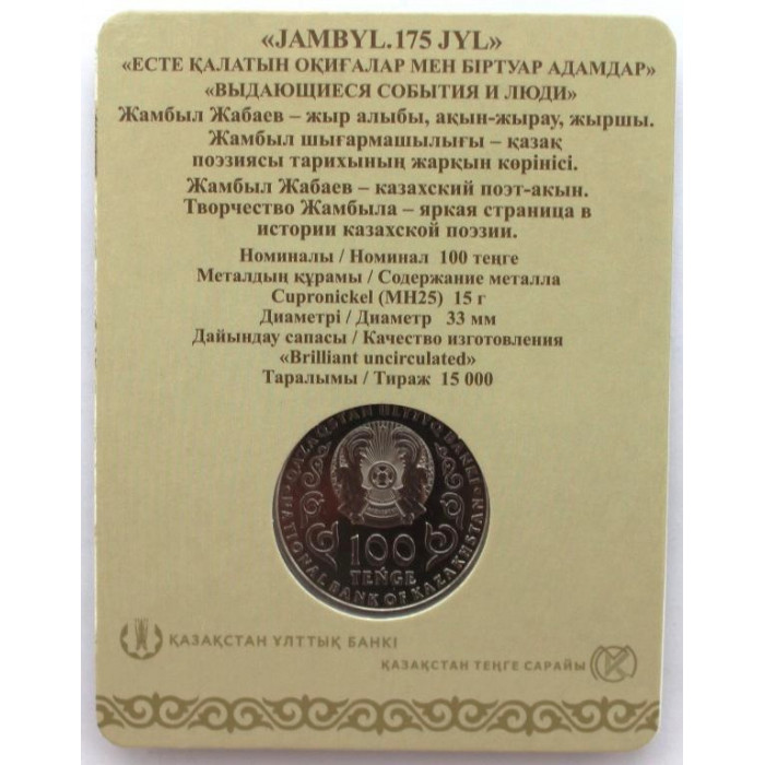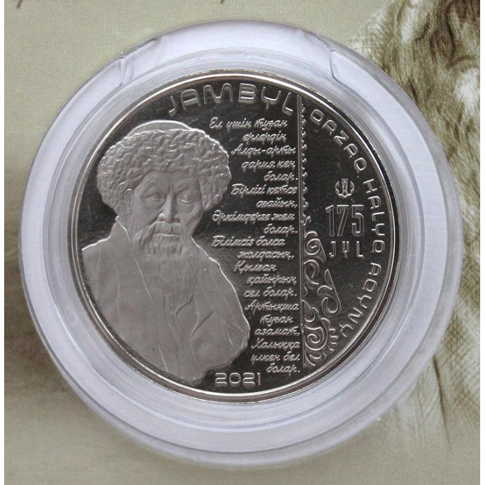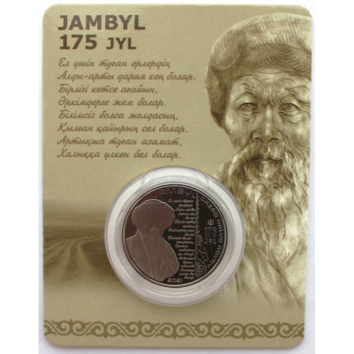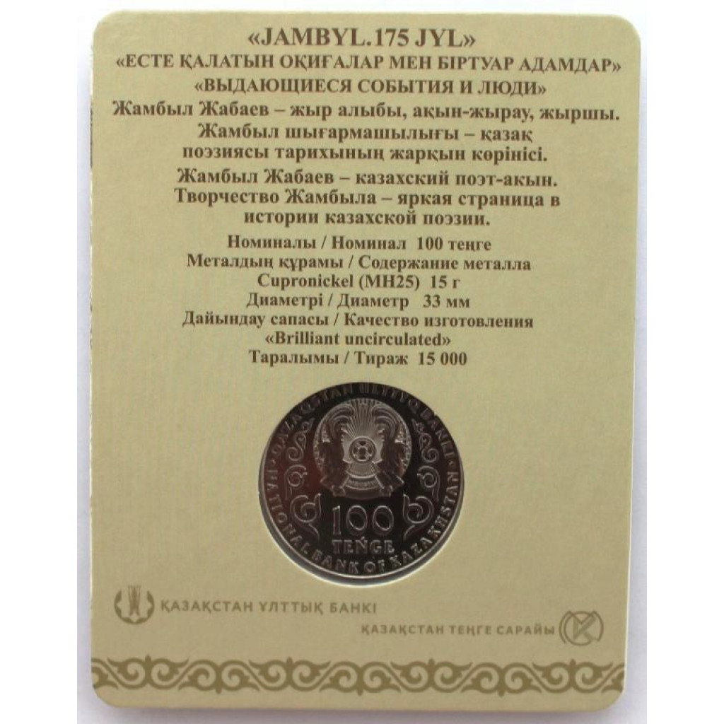 КАЗАХСТАН 100 тенге 2021. Джамбул Джабаев. 175 лет со дня рождения (блистер)