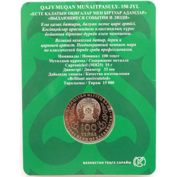 КАЗАХСТАН 100 тенге 2021. Хаджимукан Мунайтпасов. 150 со дня рождения (блистер)