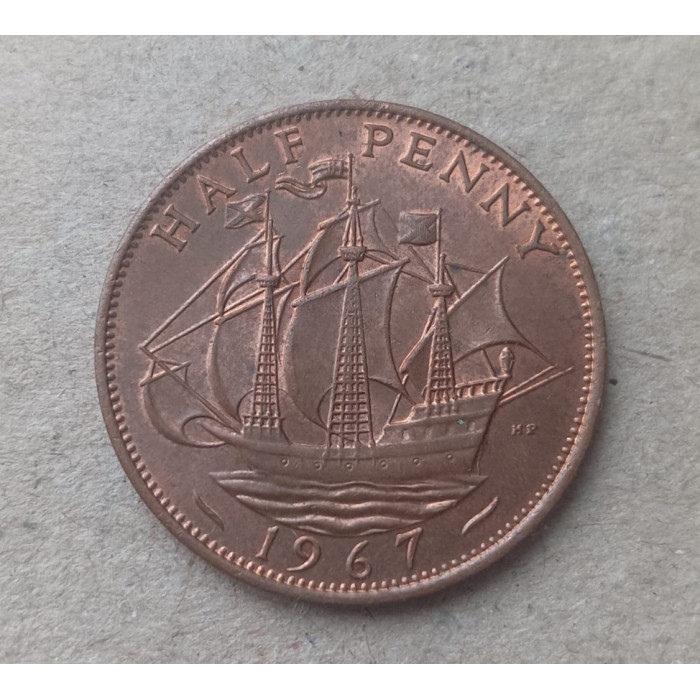 Великобритания 1/2 Пенни 1967 год , Английский галеон, Елизавета 2