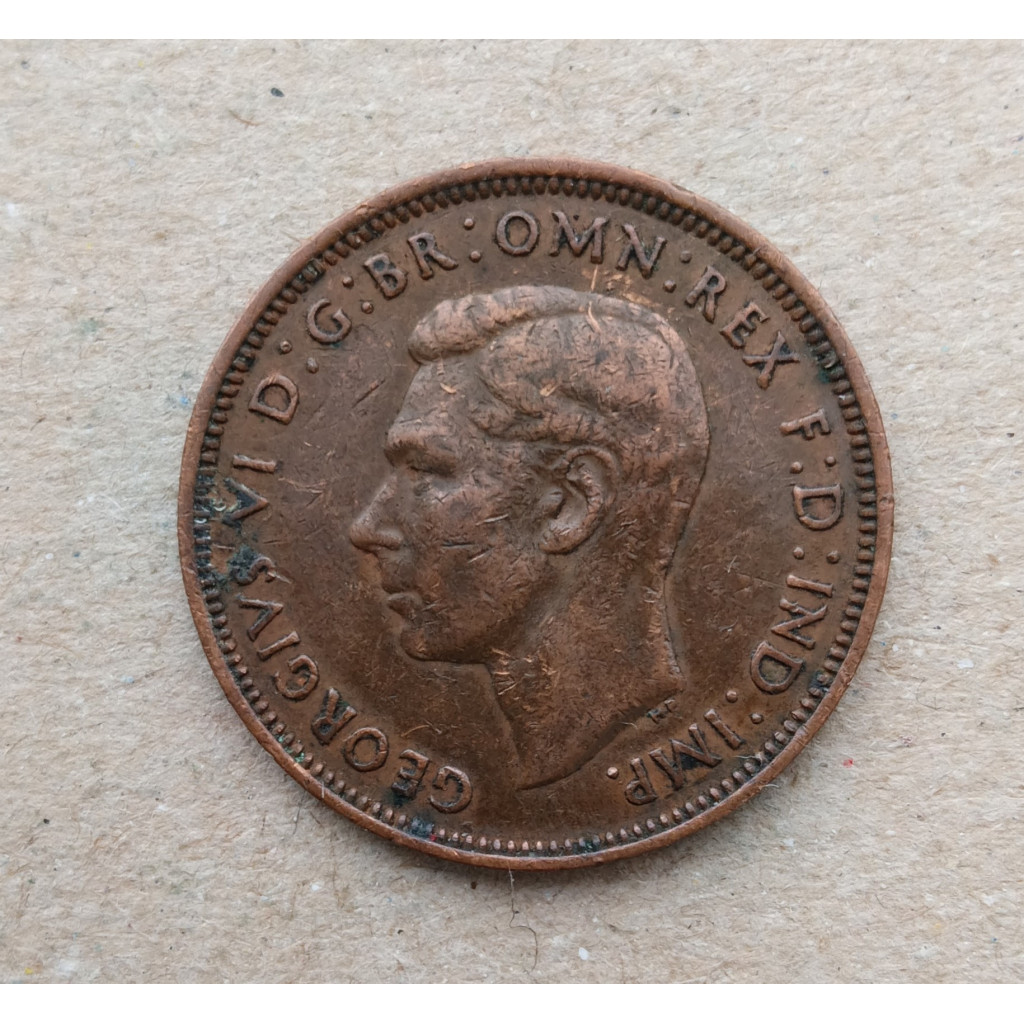Великобритания 1/2 Пенни 1943 год , Английский галеон Золотая лань, Георг 6