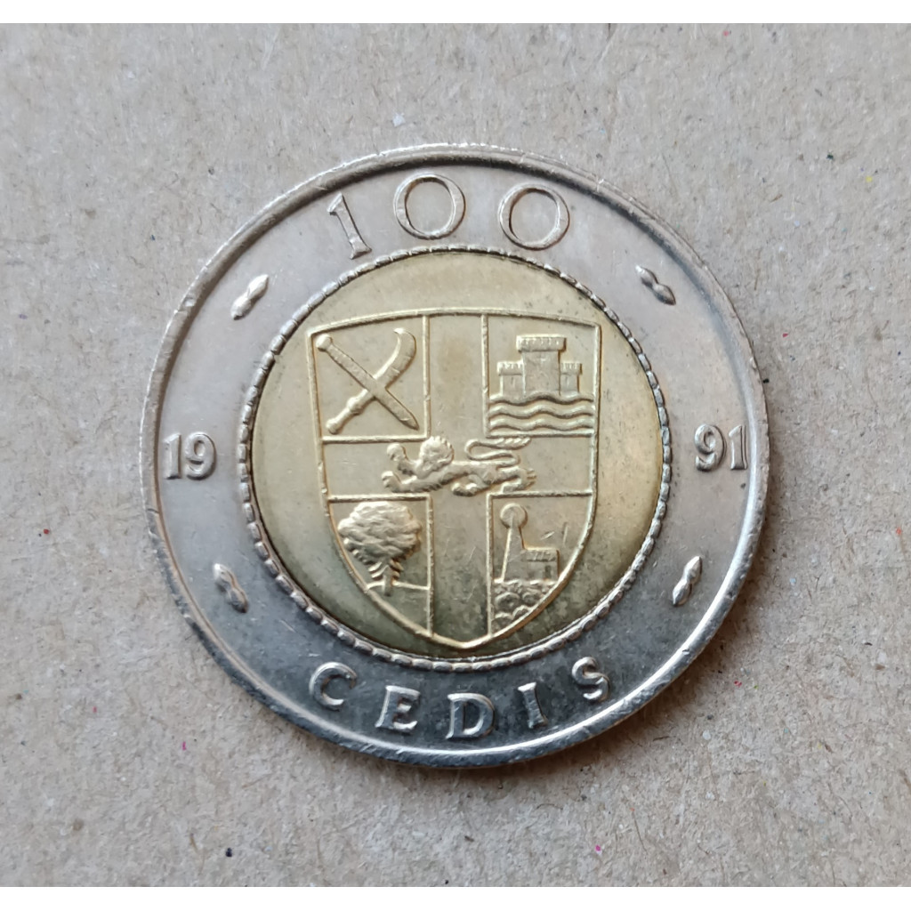 Гана 100 Седи 1991 год, Герб, Плоды какао, Биметалл