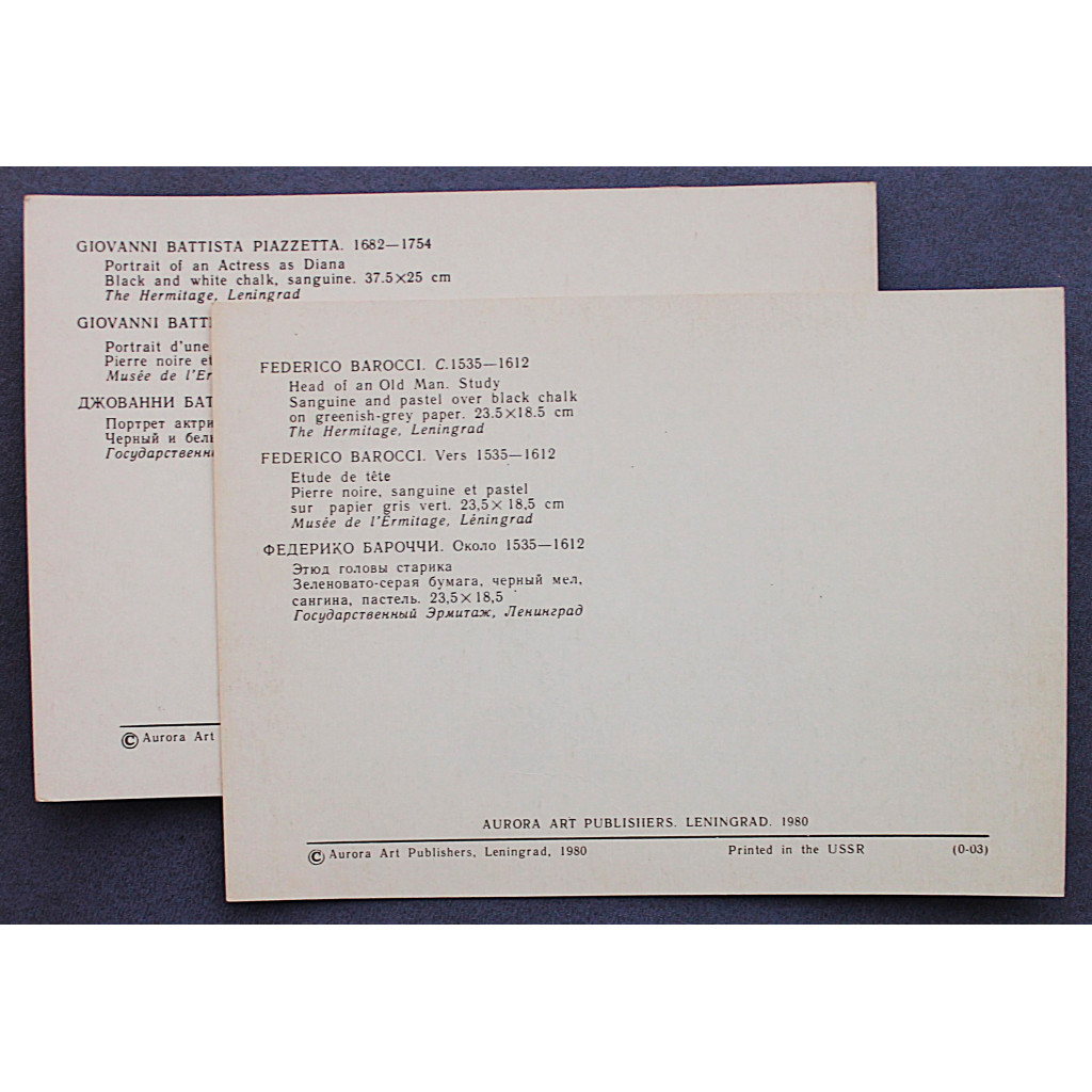 СССР пара открыток «ГОСУДАРСТВЕННЫЙ ЭРМИТАЖ». Пьяццетта. Бароччи (Ленинград, 1980)