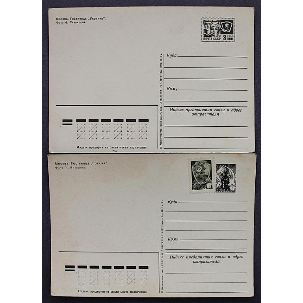 СССР почтовая открытка «МОСКВА». Гостиницы "Украина" и "Россия" (Мин связи, 1975, 1980) Чистые. Комплект