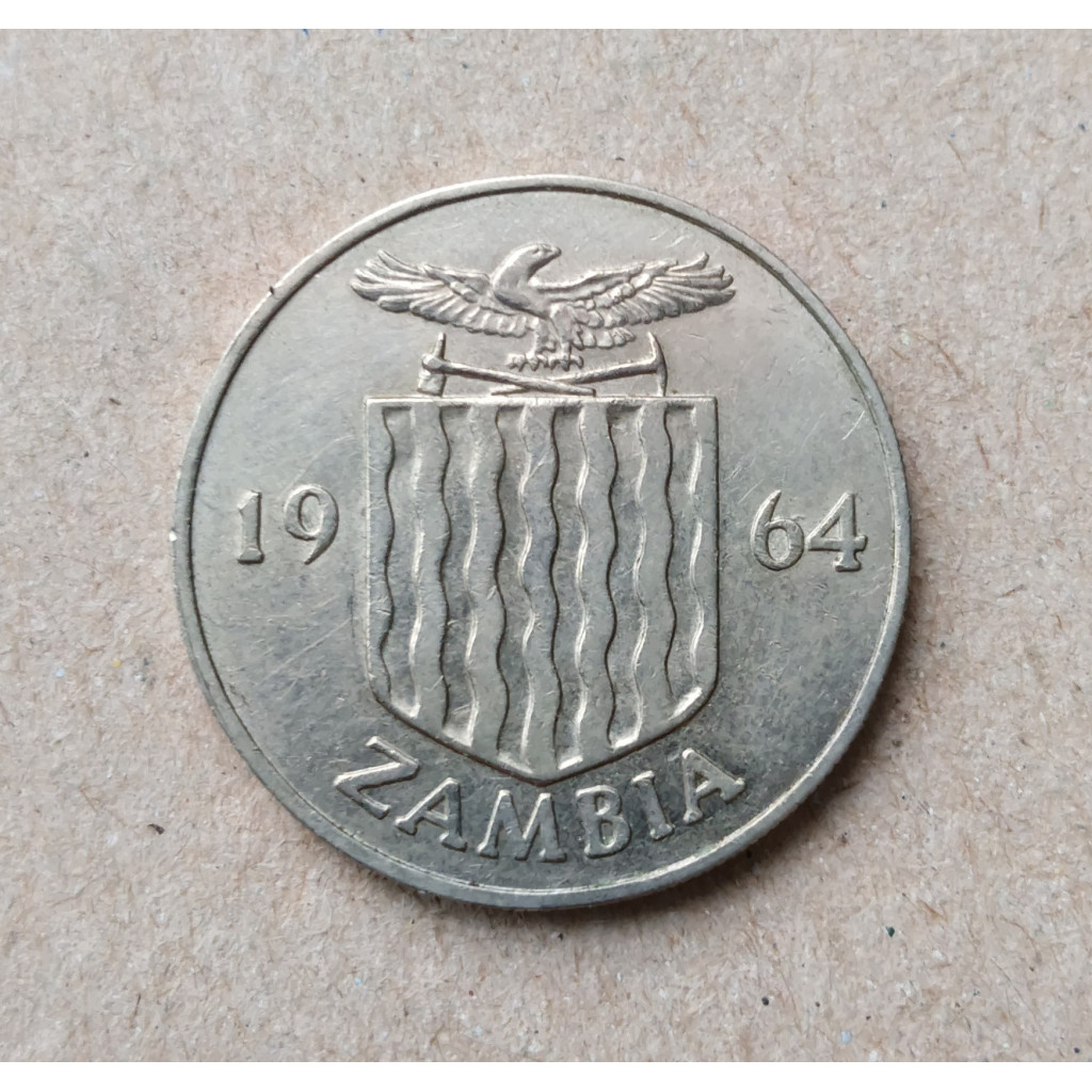 Замбия 1 шиллинг 1964 год , Птица-носорог , Венценосный ток