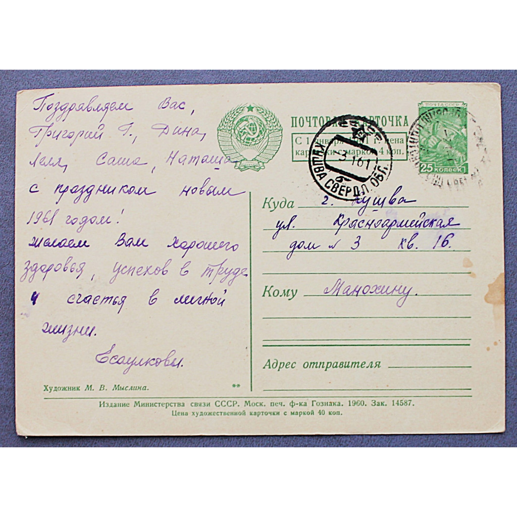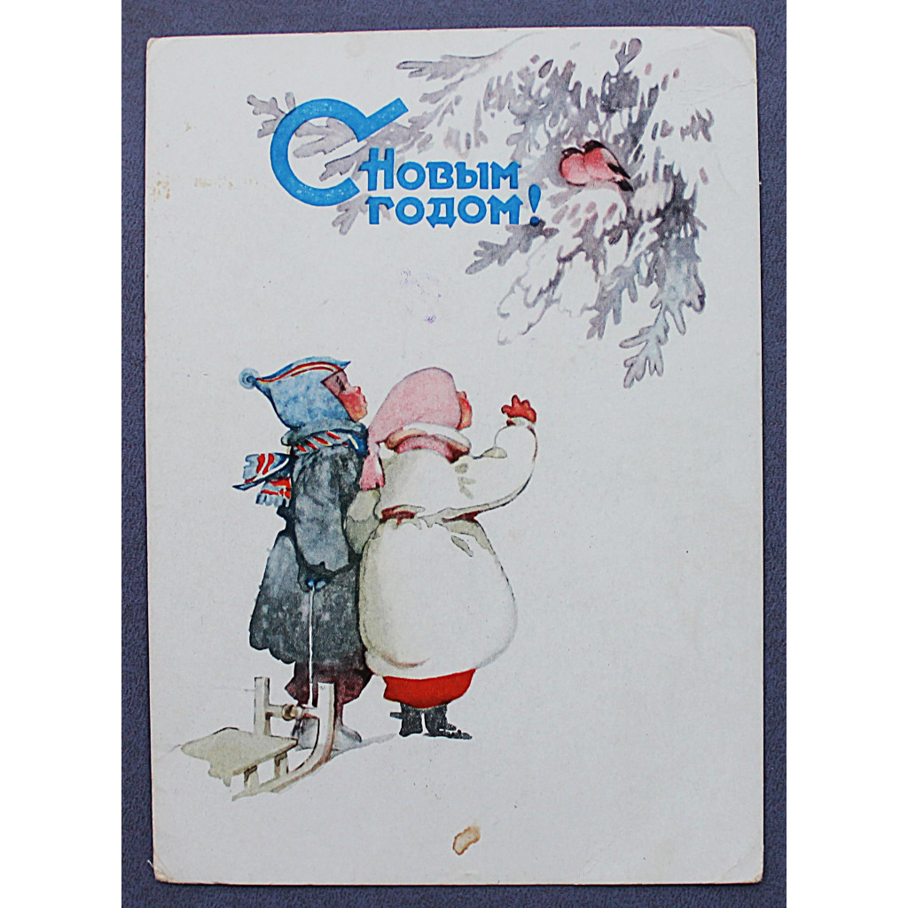 СССР почтовая открытка «С НОВЫМ ГОДОМ!». Дети и снегири (Мин связи, 1960) Мыслина (подп)