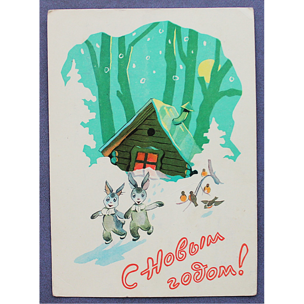 СССР почтовая открытка «С НОВЫМ ГОДОМ!». Зайцы (Мин связи, 1960) Ильин (подп)