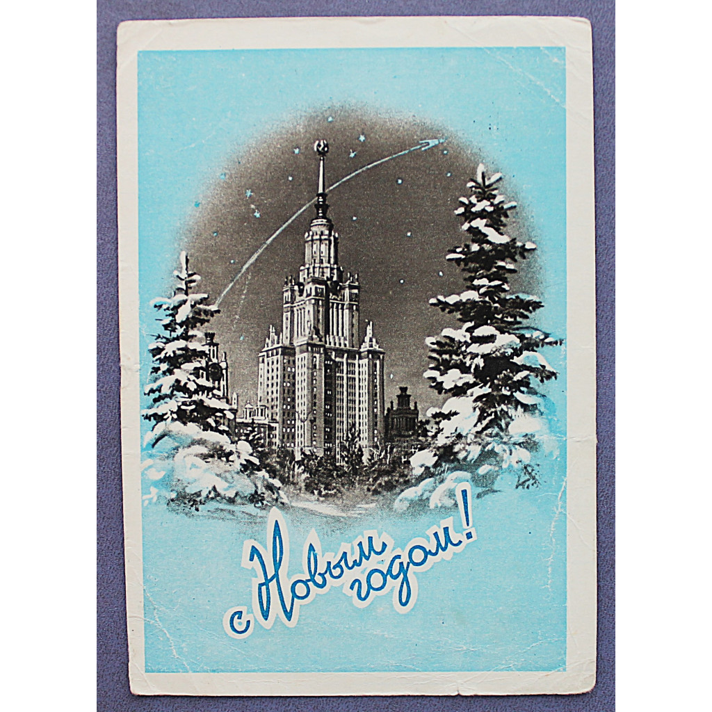СССР почтовая открытка «С НОВЫМ ГОДОМ!». Дом на Котельнической (Мин связи, 1958) Поманский (подп)