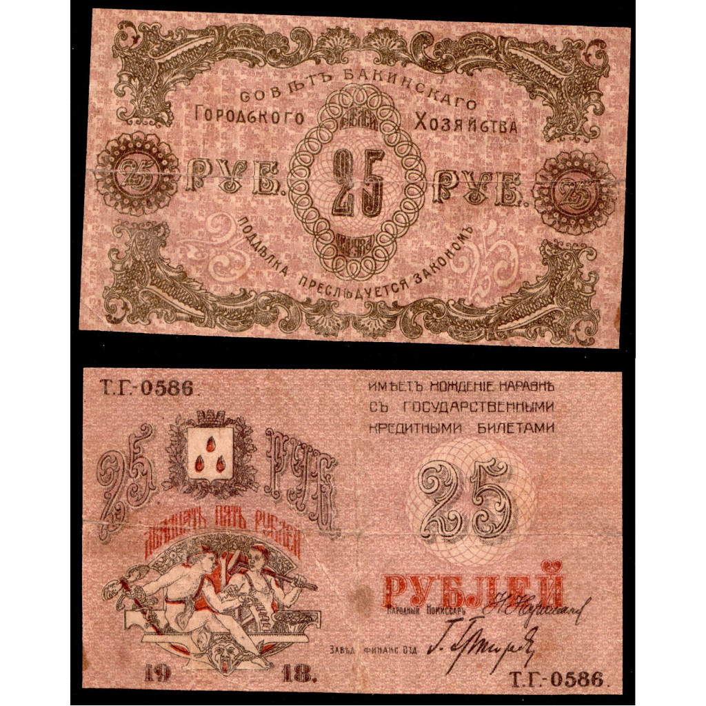 Россия 25 Рублей 1918 год. Совет Бакинскаго Городского Хозяйства. ТГ-0586