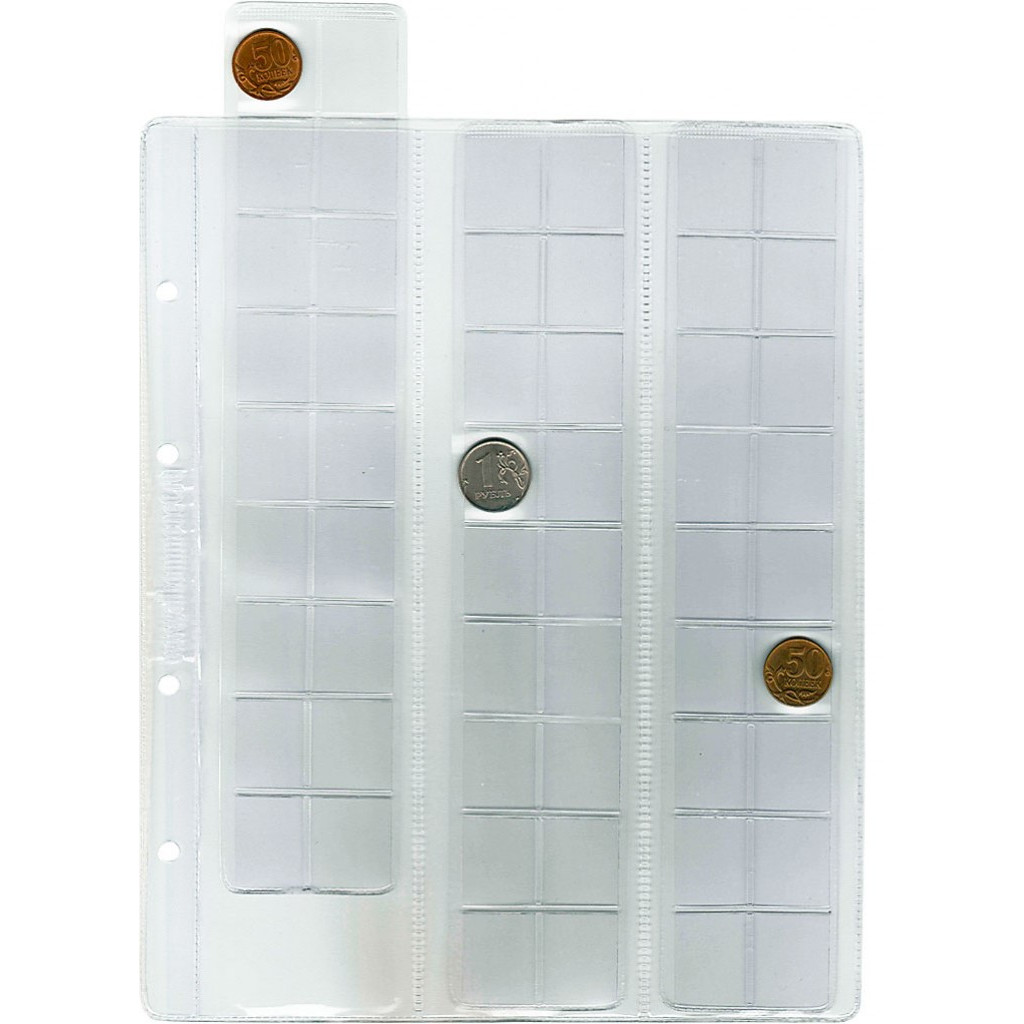 В комплекте листы на 15, 24, 35, 54 монеты.