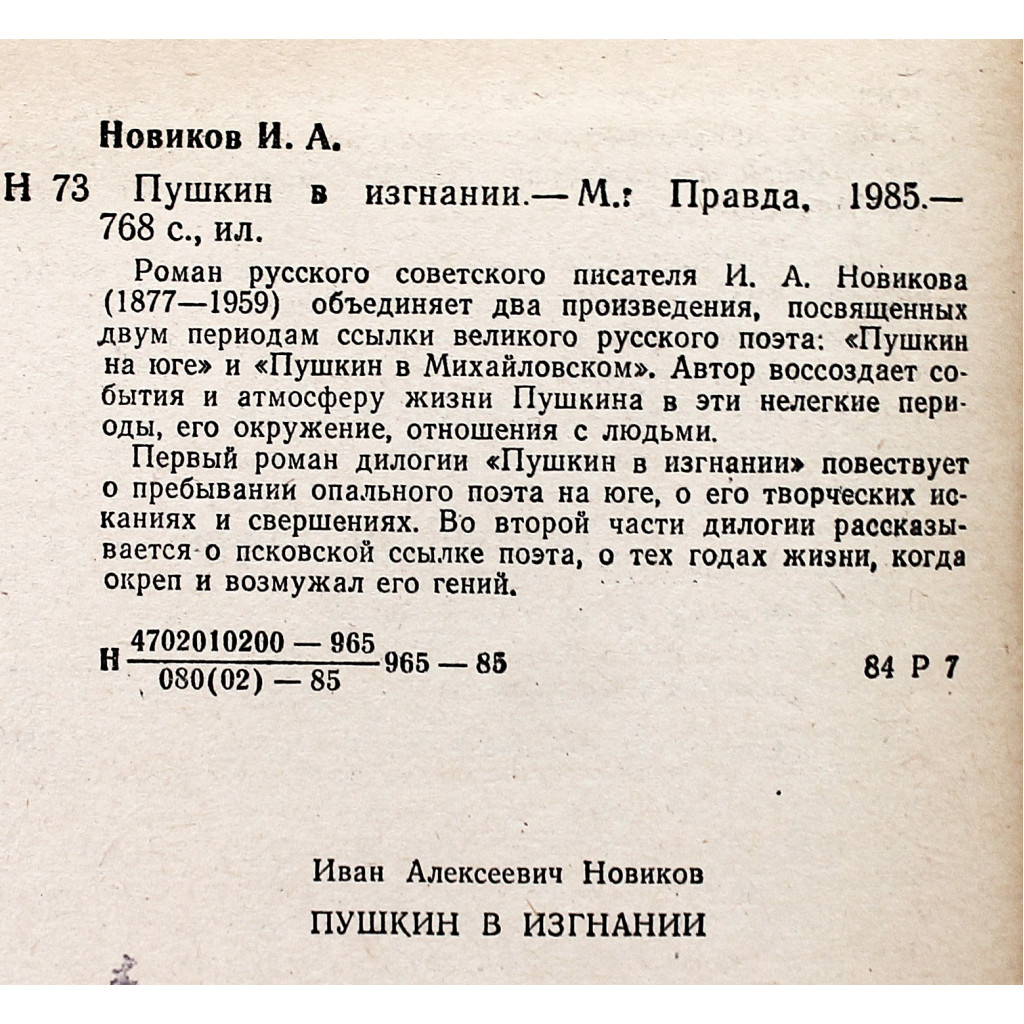 Роман русского советского писателя Ивана Алексеевича Новикова (1877-1959) объединяет два романа, посвященных двум периодам ссылки великого русского поэта: 'Пушкин на юге' и 'Пушкин в Михайловском'. Автор воссоздает события и атмосферу жизни Пушкина в эти нелегкие периоды, его окружение, отношения с людьми. Тщательное изучение источников, документов помогло автору рассказать о рождении творческих замыслов поэта, о его связях с декабристами, о формировании его взглядов.