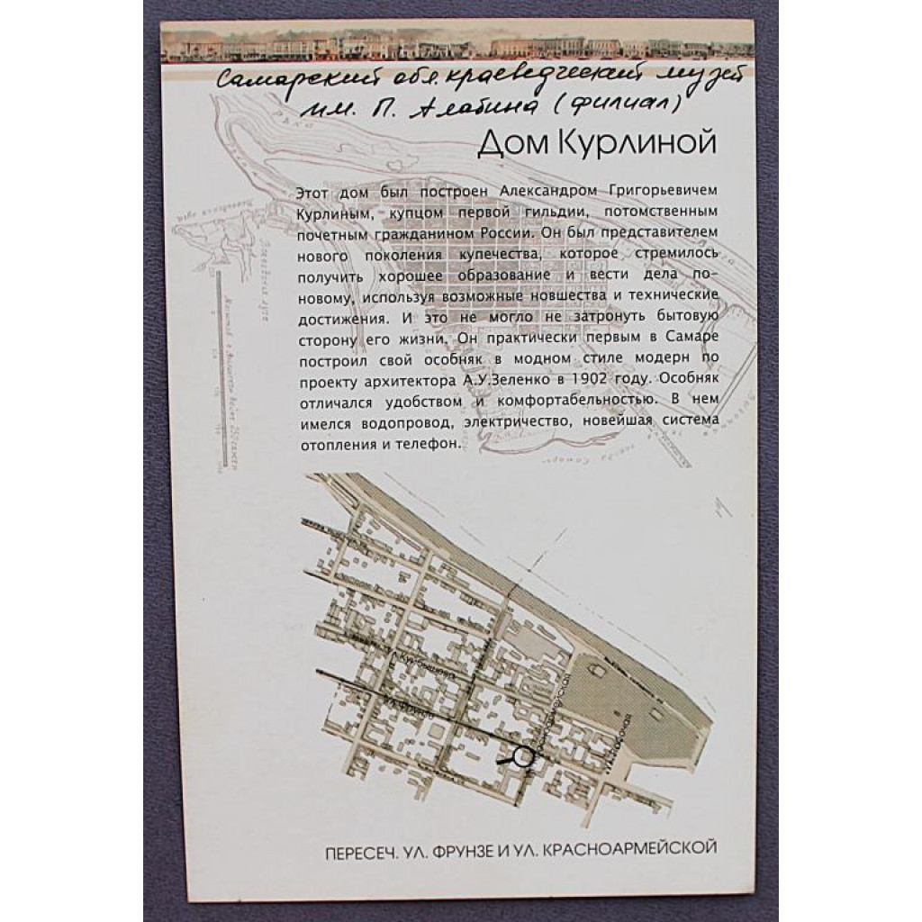 Открытка «САМАРА». Дом Курлиной. Памятник архитектуры города. Новая. Посткроссинг