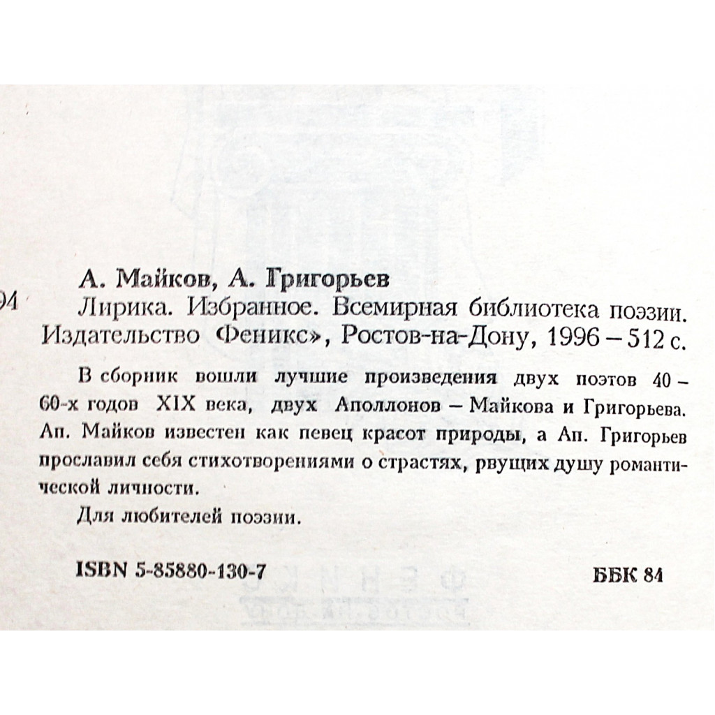 «Два Апполона»: А. Майков, А. Григорьев - Лирика. Избранное (Феникс) «Всемирная библиотека поэзии»